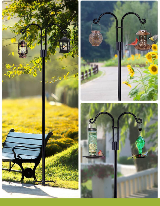 Double Shepherds Hooks for Outdoor, 2 Pack 60 Inch Bird Feeder Pole with 5 Prongs Base
