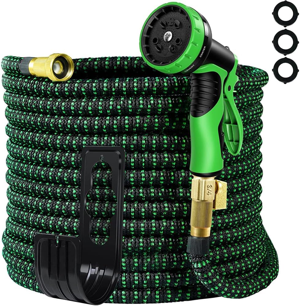 3X Expandable Retractable Hose:When the water pressure is turned on, the length of our flexible hose expands to 100 feet of its original length in seconds, and retracts quickly when the water goes out. Garden hose 100ft is the most popular length and can cover most home gardens for the enjoyment of your garden. Tips: Drain the water from the hose when not in use (close the faucet, open the nozzle of the water hose for a few seconds) and store in a cool, dry place.