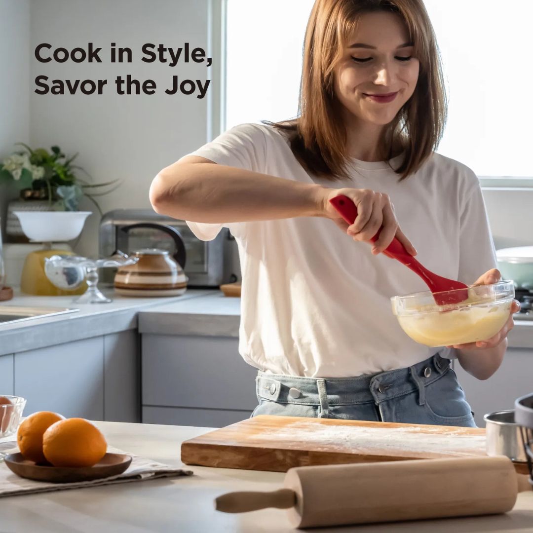 Each utensil is crafted with premium, heat-resistant silicone that can withstand temperatures up to 230°C, ensuring durability during high-heat cooking and baking. The Scraping Spatula excels at mixing delicate batters and handling thick dough, while the Basting Brushes boast seamless, non-shedding bristles for even glazing of pastries, meats, or BBQ. All tools are dishwasher-safe for easy cleaning, and their one-piece, stainless steel-reinforced construction prevents flexing or bending under pressure.