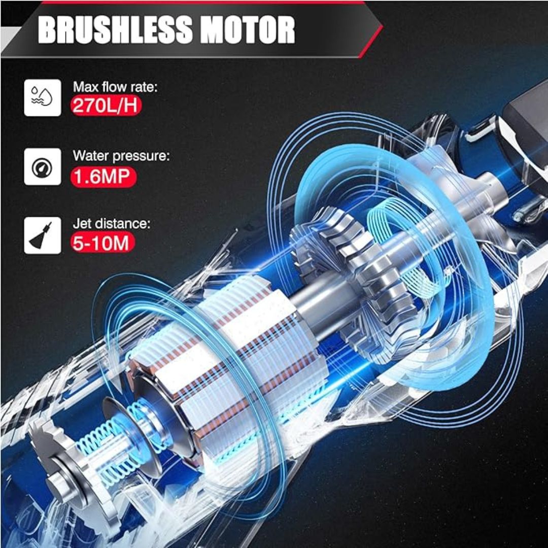 Designed for efficient, on-the-go cleaning, the Portable Pressure Washer combines high-pressure performance, cordless convenience, and versatile functionality. With its brushless motor, powerful 21V battery, and multi-mode adjustable nozzle, this lightweight pressure washer is suitable for car washing, outdoor surfaces, and general household cleaning.