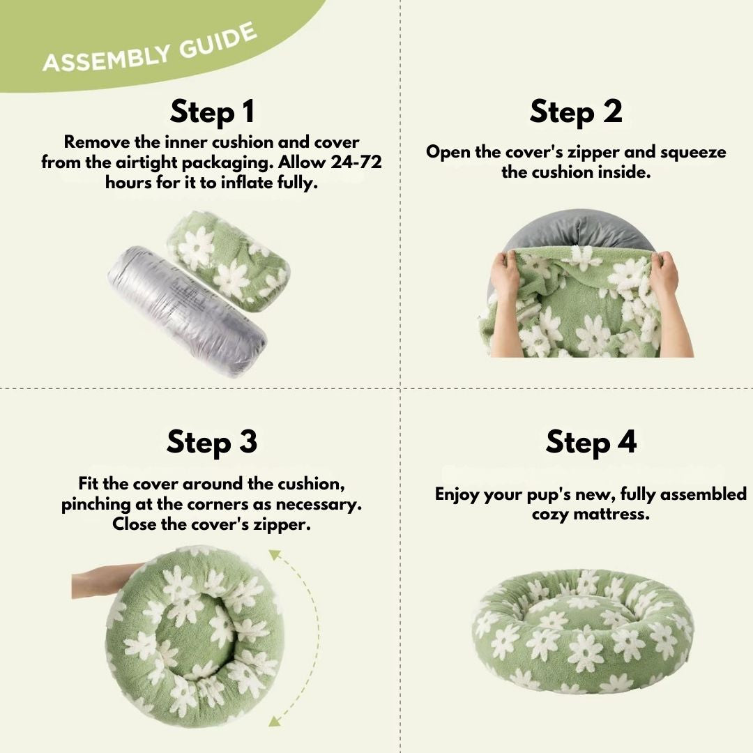 Unpacking your pet's new cozy retreat is a breeze! Simply remove it from the package, slip on the washable cover, and it's ready for your furry friend to enjoy. With its easy-to-clean cover and non-slip bottom, comfort has never been so effortless!