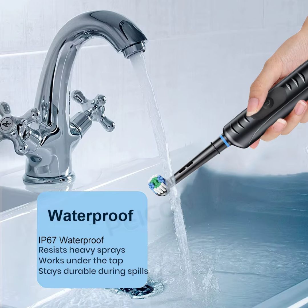 Designed for daily use, this toothbrush features a water-resistant body, allowing for easy rinsing and safe use in humid environments.