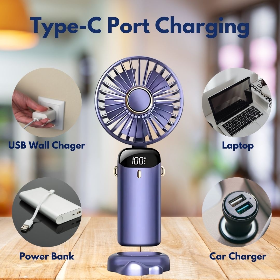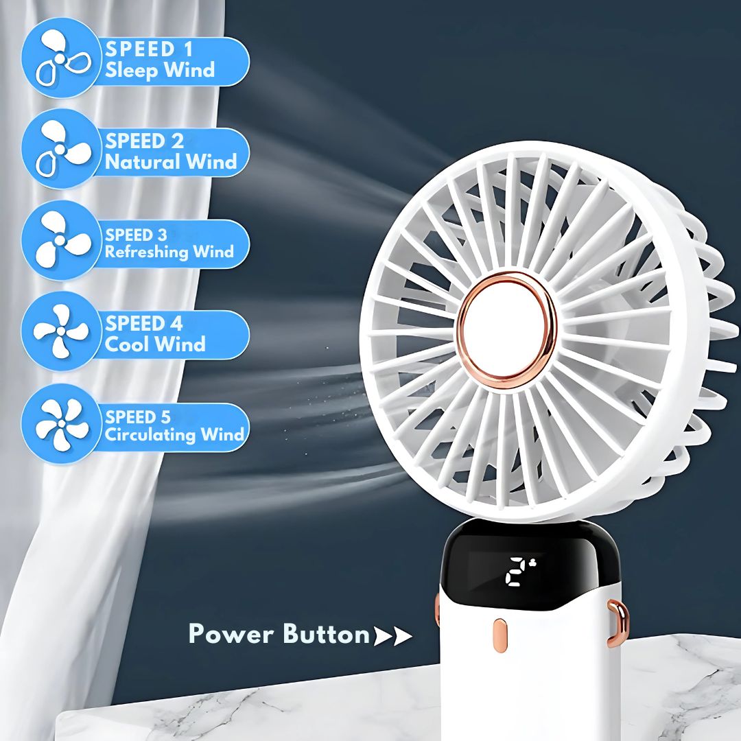 Stay cool anytime, anywhere with the Rechargeable Handheld Fan Your Ultimate Cooling Companion — a lightweight, wearable, and powerful mini fan designed for life on the go. With hands-free convenience and 5 adjustable wind speeds, it’s your personal breeze, perfectly tailored to keep you refreshed in any situation.