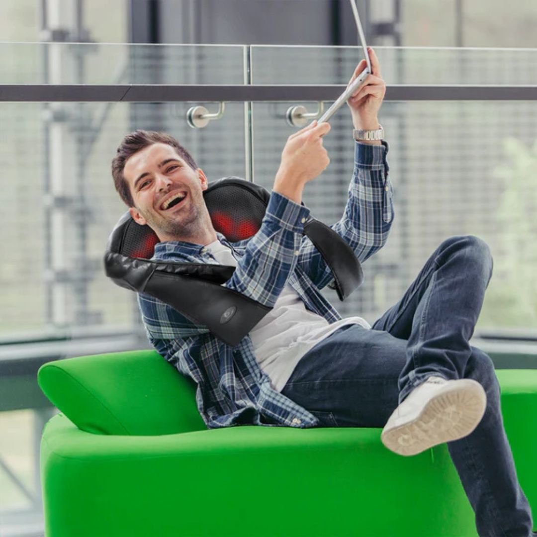 Enhance your massage experience with the built-in heating function that helps relieve muscle stiffness and improve blood circulation. The gentle warmth complements the kneading action, ensuring that you get both comfort and relief from your neck, shoulders, and back. Whether you're at home or traveling, the heating function provides a calming, therapeutic effect that makes your relaxation session even more enjoyable.